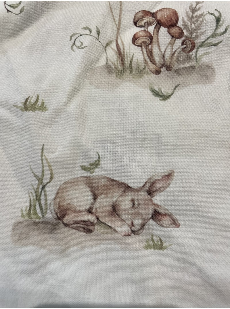 Tissu coton Oeko-Tex blanc motif lapin